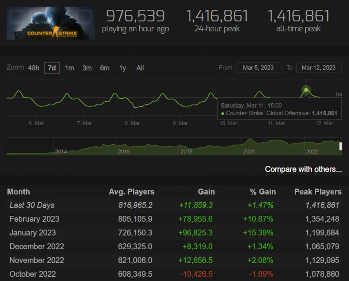 CS:GO przebiło 1,4 miliona grających